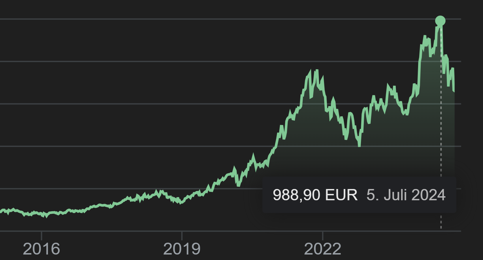 Aktienkurs von ASML, dem Monopolisten für EUV Lithographie Maschinen, die für die Halbleiterproduktion benötigt werden