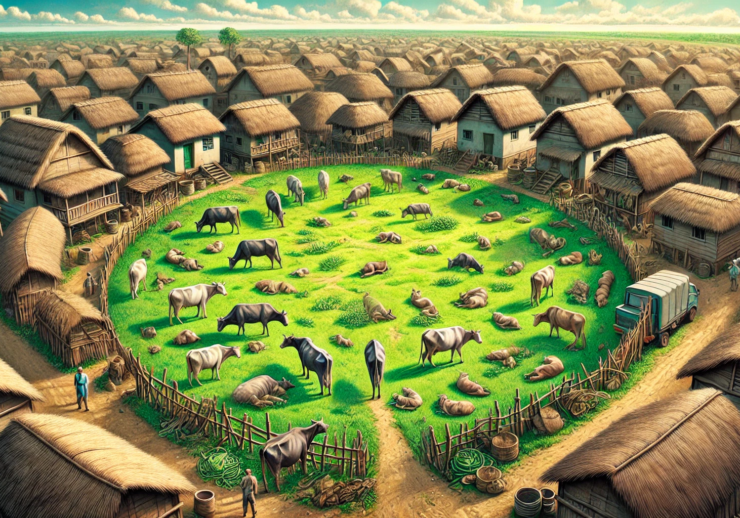 Nehmen wir als Beispiel eine Weide in der Mitte eines Dorfes