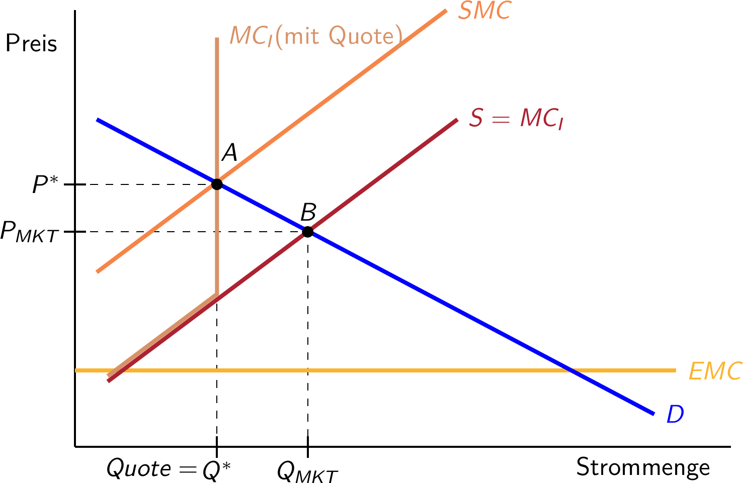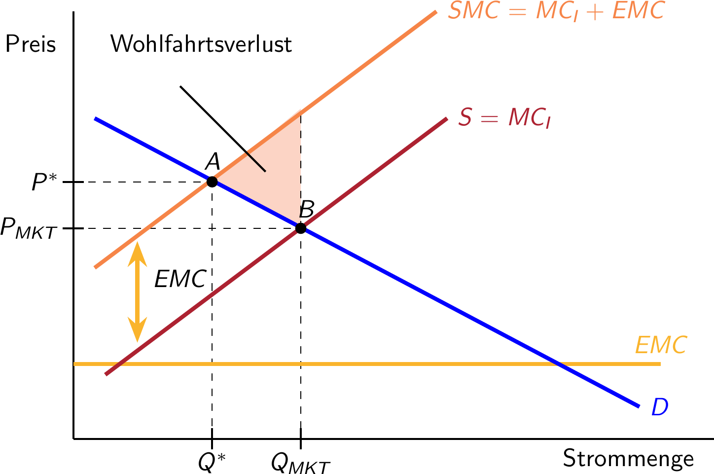 Für die Wohlfahrtsanalyse des Strommarktes sind die sozialen Grenzkosten \(SMC=MC_I + EMC\) relevant
